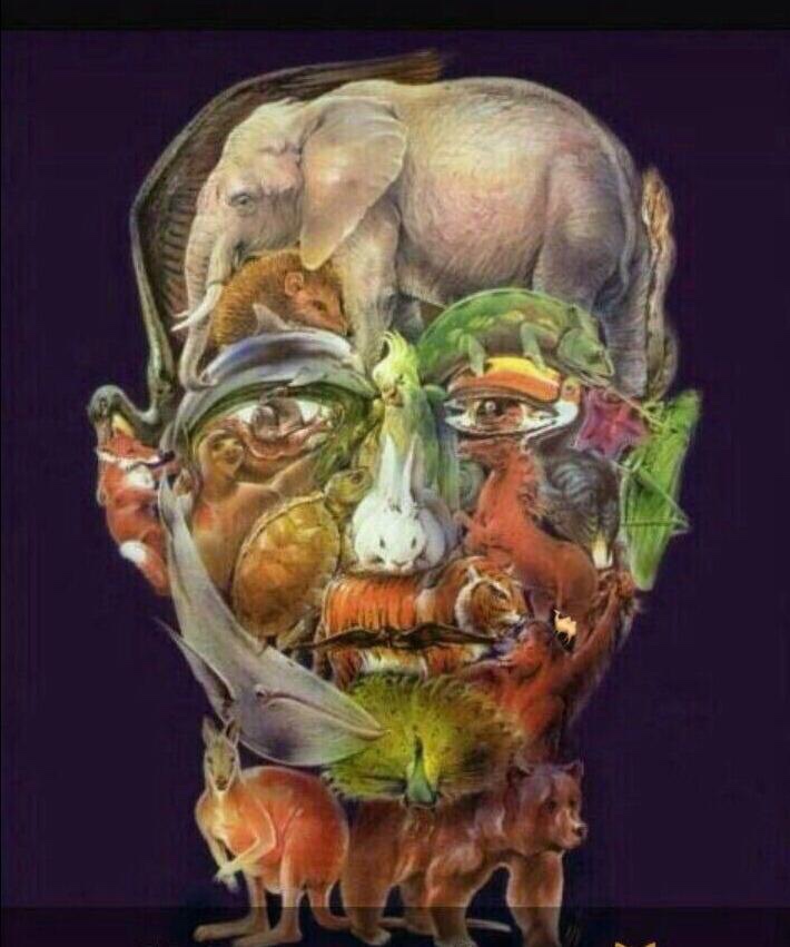 una persona compuesta por varios animales. El reto era descubrir al camello que de alguna manera estaba escondido entre los animales.